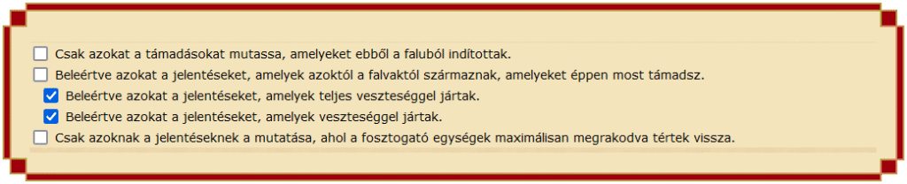 Ezzel a beállítással küldjük a fal rombolásokat. Így csak azokat mutatja ahol veszteségünk volt és gyorsabban kiszűrhetőek.