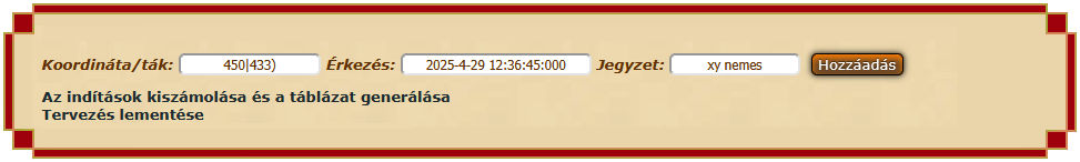 Miután kiválasztottuk mit szeretnénk az első mezőnél válasszuk ki azt a falunkat ahonnan szeretnénk az egységeket indítani (egy faluból korlátlan indítás elehtséges tervezésként, akár más koordinátáknál is).